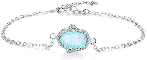14K White Gold Bracelet with Opal and Moissanite Accents, Dainty Oval Shape Opal Adjustable Chain Bracelet, Chic Fashion Jewelry for Women