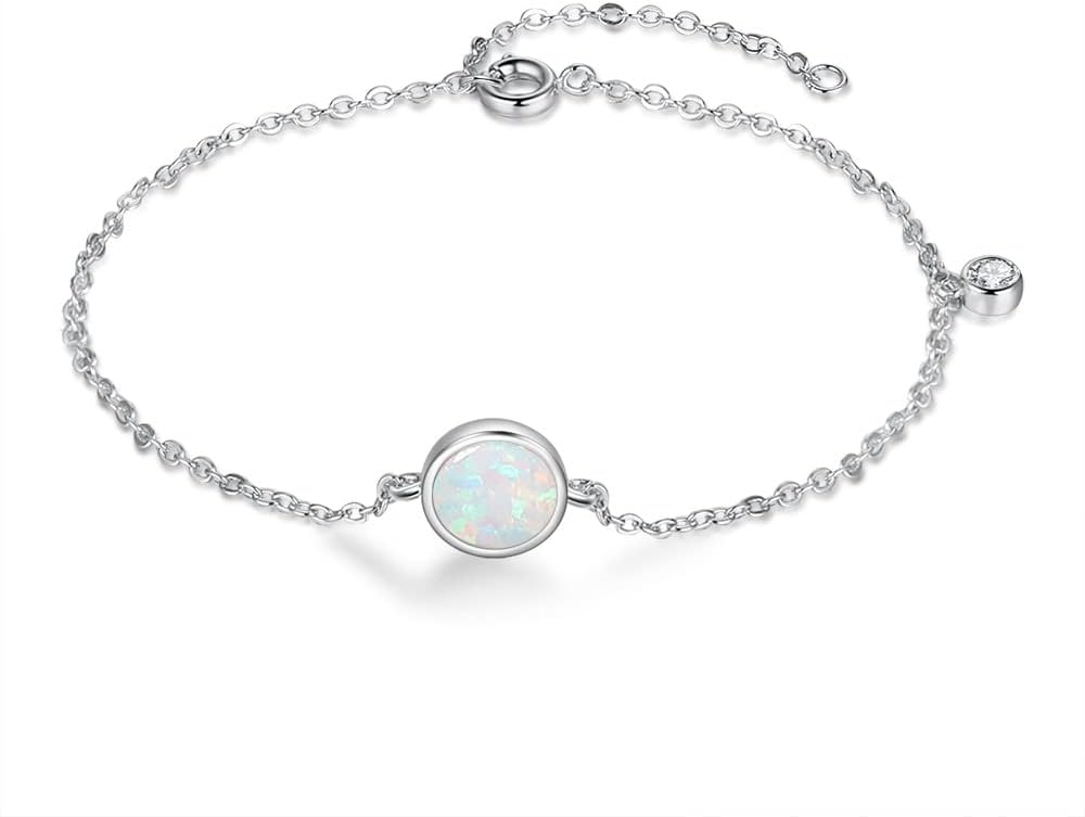 【Unique Design】The white gold bracelet set with beautiful opal adds a gorgeous sparkle to your hands, plus the sparkling moissanite makes you stand out. The adjustable clasp at the end of the bracelet fits all women.