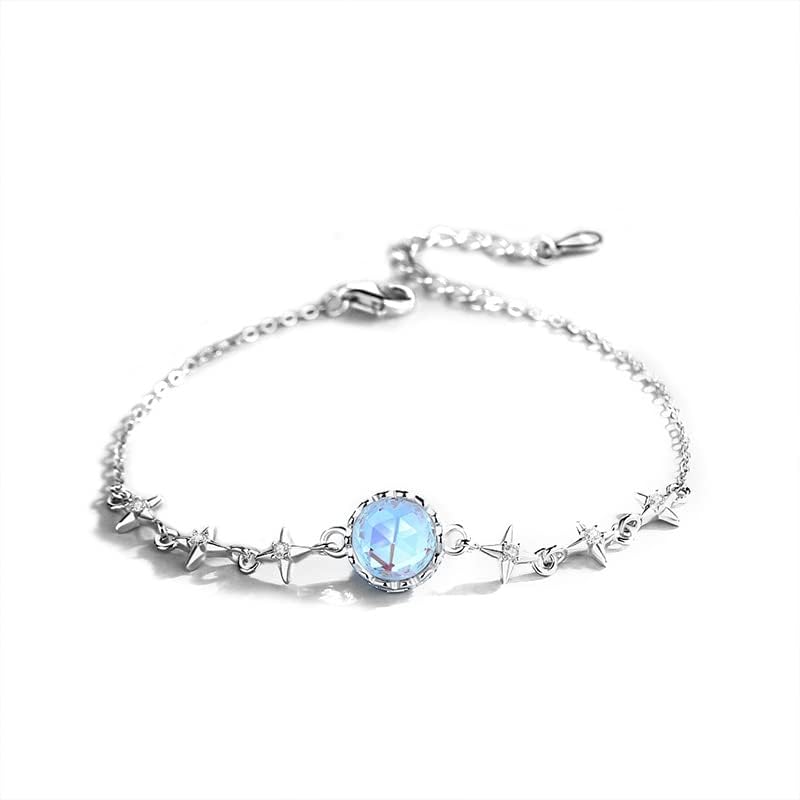 【Elegant Design】White gold bracelet, a round blue opal is inlaid with a circle of smaller moissanite bezels, full of layers, and will reflect different colors under the illumination of light or sunlight.