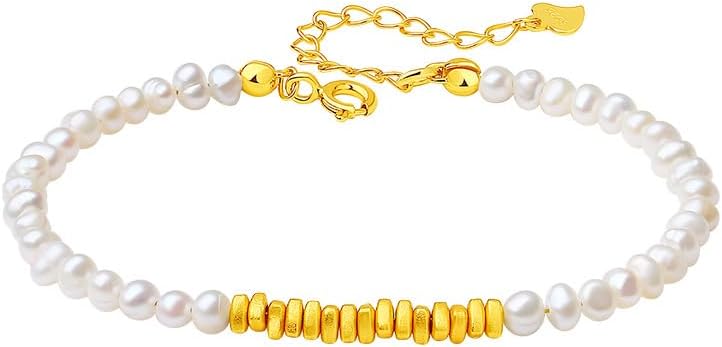 【Size】The chain length of the bracelet is 5 inches (15cm) plus a 1inches (4cm) extension chain, the broken gold size is 4mm*4mm, the pearl size is about 5mm*5.5mm, and the weight is about 6.6g. Suitable for everyone to wear.