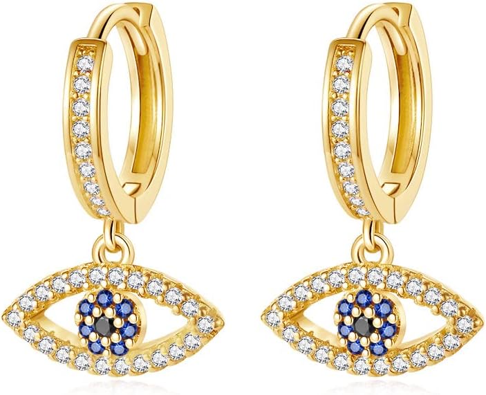 14K Gold Moissanite Evil Eye Hoop Earrings for Women,Delicate Blue Crystal Devil’s Eye Huggie Drop Earrings,Fashion Christmas Jewelry Gift for Her