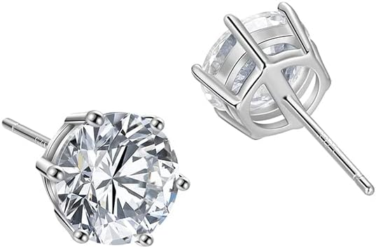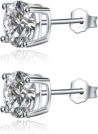 14K Gold Plated Cubic Zirconia Diamond Stud Earrings,S925 Silver 4 Prong CZ Studs,Fashion Jewelry Gift Women