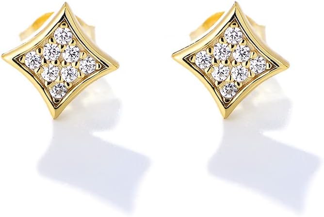 14K Gold Post Stud Earrings for Women,Dainty Pave Moissanite Rhombus Earrings,Fashion Jewelry Gift for Her