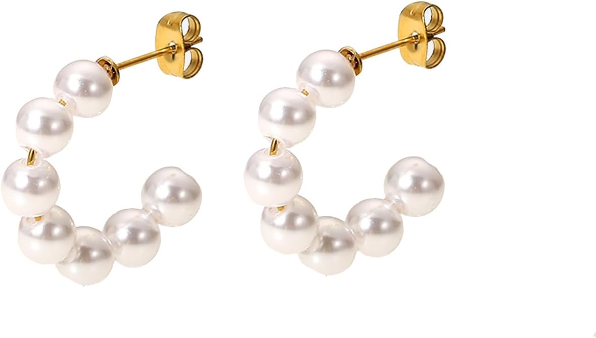 14K Gold Plated Pearl Earrings, Chic Pearl Earrings- Perfect Fashion Accessory & Birthday Gift for Ladies