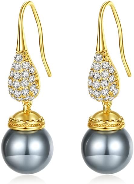 14K Gold Tahitian Pearl & Moissanite Drop Earrings for Women, Dainty Geometric Freshwater Pearl Dangle, Fashionable Christmas Jewelry Gift, Unique Evening Accessory
