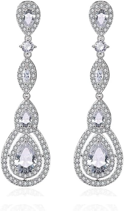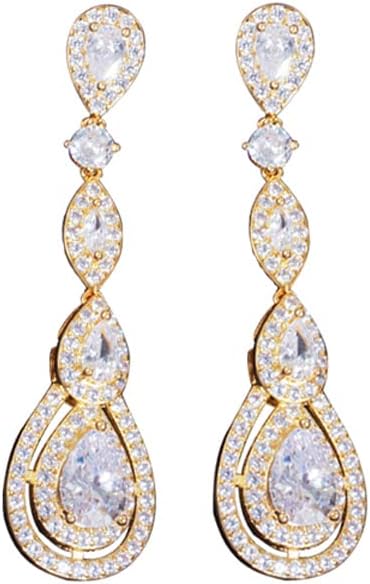 【Exquisite Design】This unique drop earrings are inlaid with sparkling crystals, and the drop-shaped crystals are decorated with a circle of round moissanite on weekends. The exaggerated gorgeous design combines the beauty of art and is suitable for various occasions .