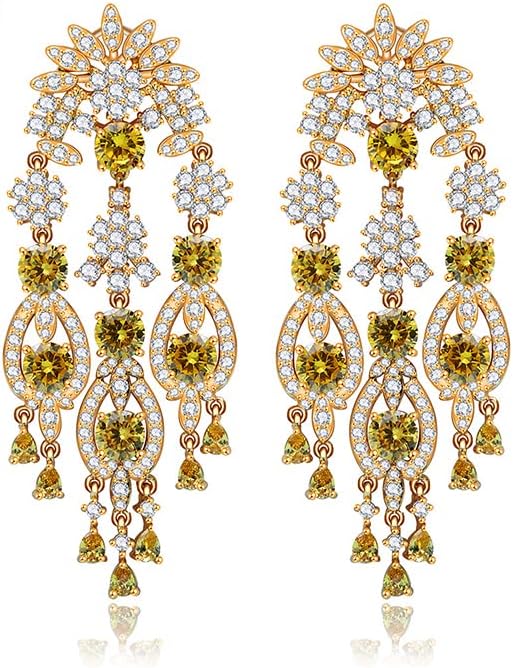 【Shiny Design】This drop chandelier earrings are fully inlaid with crystals and moissanite, the whole pair of earrings look more shining under the light, and the exaggerated design does not lose its charm. It is suitable for wearing when attending important banquets and gatherings.