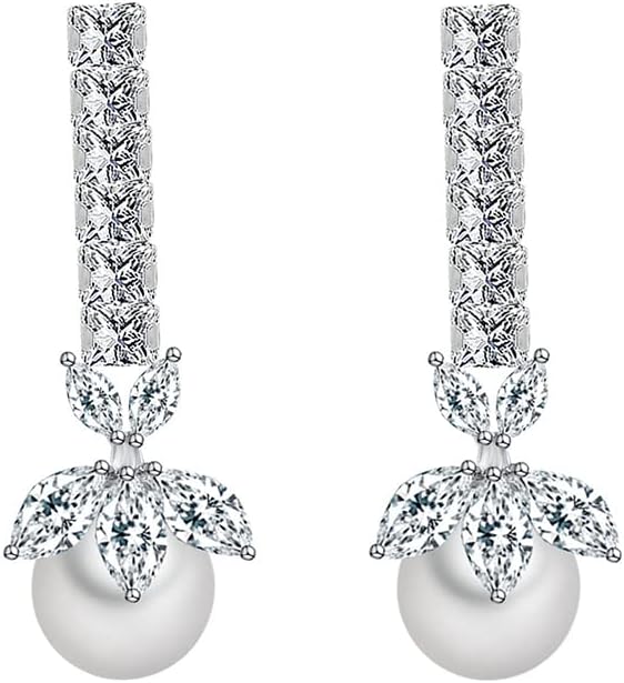 Gold Freshwater Pearl Earrings with Delicate Moissanite Dangle – Fashionable Jewelry Gifts for Her