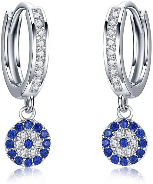 Gold Moissanite Evil Eye Hoop Earrings for Women,Delicate Blue Crystal Devil’s Eye Huggie Drop Earrings,Fashion Christmas Jewelry Gift for Her