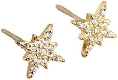 Gold Over Anise Star Earrings, Dainty Moissanite Star Stud Earrings, Fine Jewelry Gift for Her