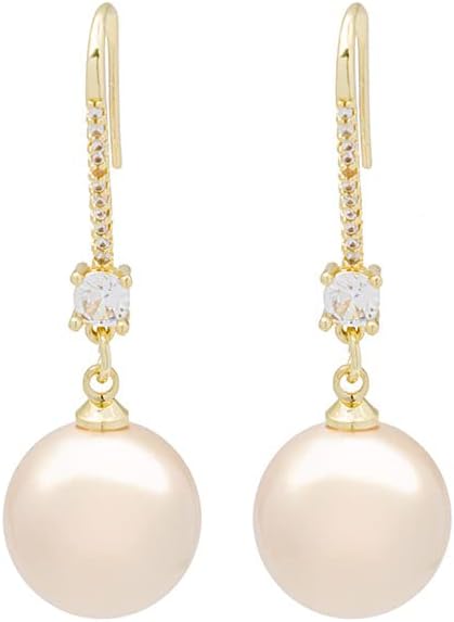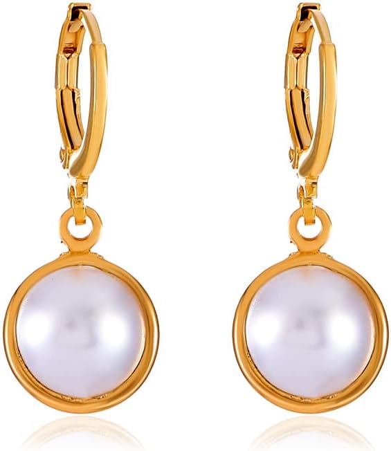 Gold over S925 Sterling Silver Pearl Earrings, Fashion Elegant Circle Pearl Dangle Earrings, Great Jewelry Gift