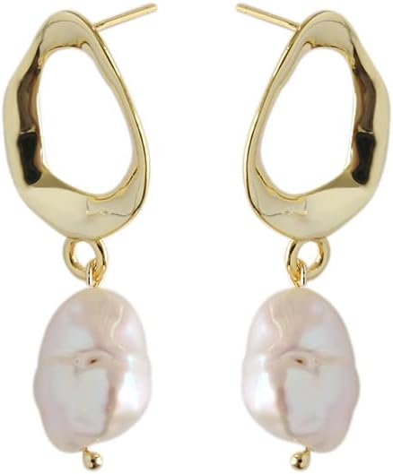 In 14K Gold, Simple Irregular Pearl Earrings with Natural Baroque Pearl Dangle Earrings, making them a Wonderful Gift for Her.