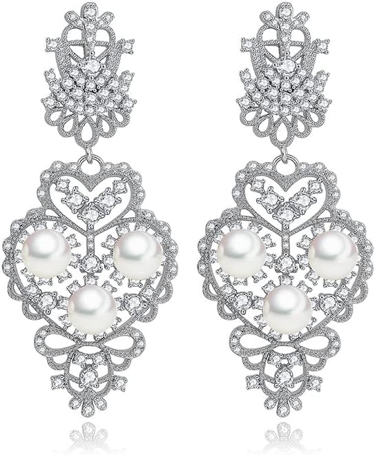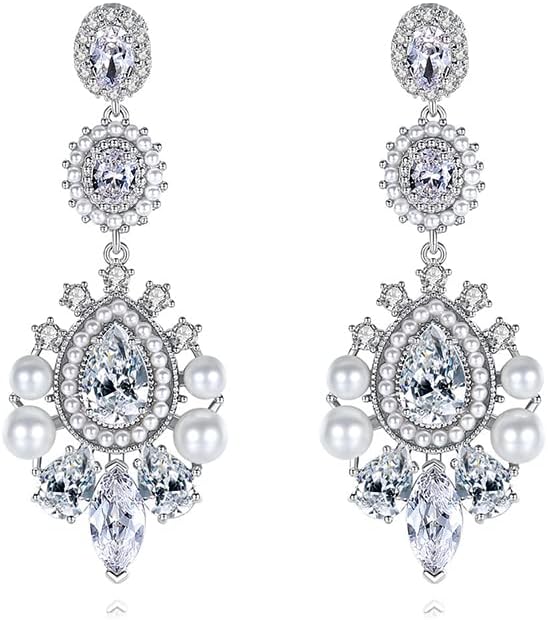 14K Gold Freshwater Pearl Chandelier Earrings for Women, Crystal and Moissanite Tassel Dangle Earrings, Fashion Jewelry Gift for Her