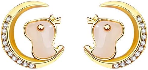 14k Gold Adorable Dragon Stud Earrings: Natural Hetian Jade Earrings, Celebratory Chinese New Year Design, Dragon Year Good Luck Jewelry