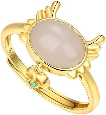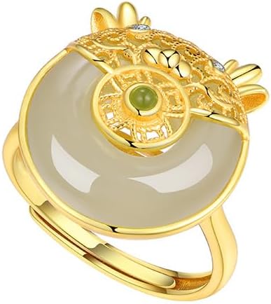 14k Gold Adjustable Natural Hetian Jade Adorable Dragon Ring, Open Design Chinese New Year Auspicious Jewelry, Lucky Charm Gift for Her