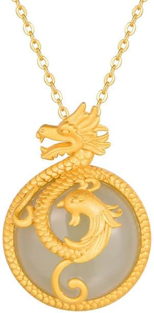 【Dragon and Phoenix Harmony Design】Embark on a journey of traditional elegance with the Gold Natural Hetian Jade Dragon and Phoenix Pendant Necklace. This magnificent piece, featuring an enamel cloisonné design, encapsulates the harmonious balance of yin and yang. The dragon, a symbol of power and strength, pairs beautifully with the graceful phoenix, representing renewal and grace, creating a perfect emblem of balance and prosperity.