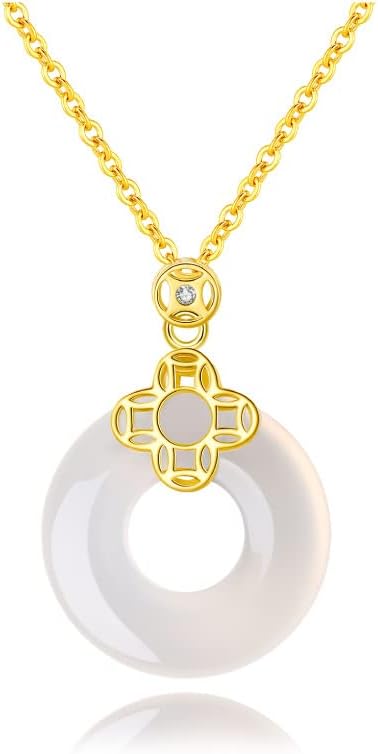 14K Gold Natural Jade Necklace, Lucky Peace Chalcedony Pendant Necklace – Perfect Gift for Mother, Wife and Girlfriend