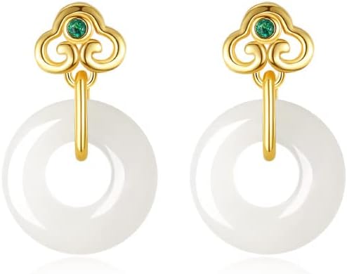 18K Gold Jade Earrings, Emerald Gemstone Cloud Earrings, Mother’s Day, Birthday Gift for Mother, Wife, Girlfriend
