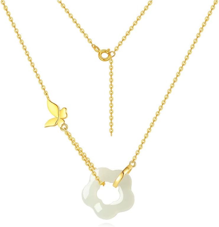 18K Gold Jade Flower Necklace, Beautiful Butterfly Necklace, For Wife,Girlfriend’s Valentine’s Day,Birthday Gift
