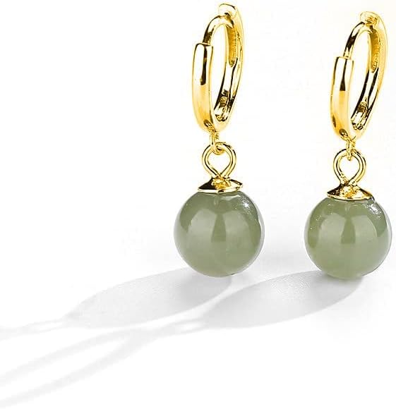 Dainty Natural Jade Drop Earrings for Women, Gold Overlay S925 Silver Vintage Style Green Jade Dangle Earrings, Fashion Jewelry Gift