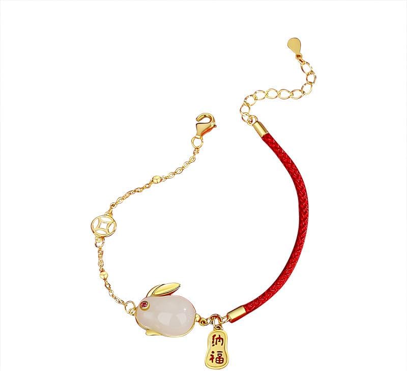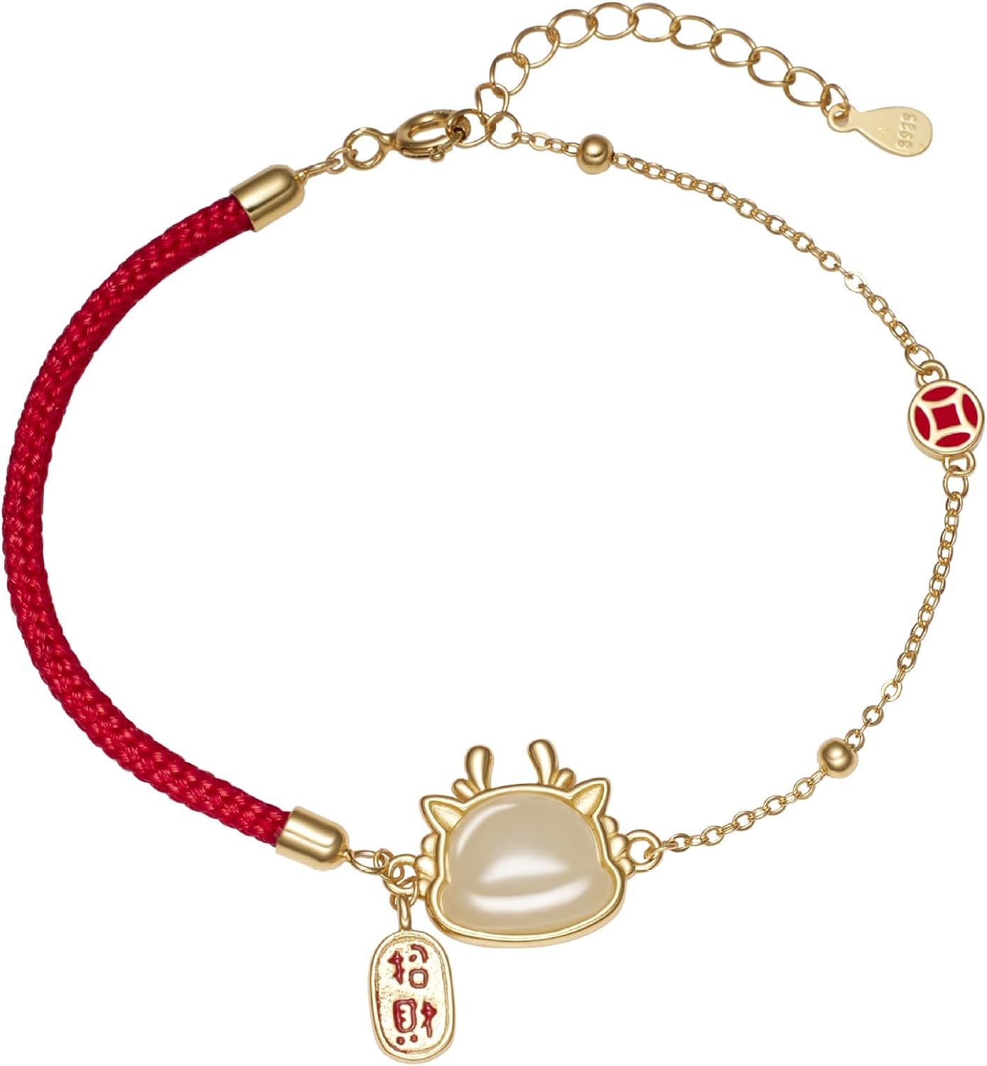 Featuring a 14K Gold Year of the Dragon Cute Dragon Fortune Auspicious Zodiac Dragon Lucky Charm Red Rope Bracelet with Hetian Jade, it’s the Ideal Gift for Women, Wife, Girlfriend on New Year, Birthday, and Special Occasions, conveying Good Wishes.