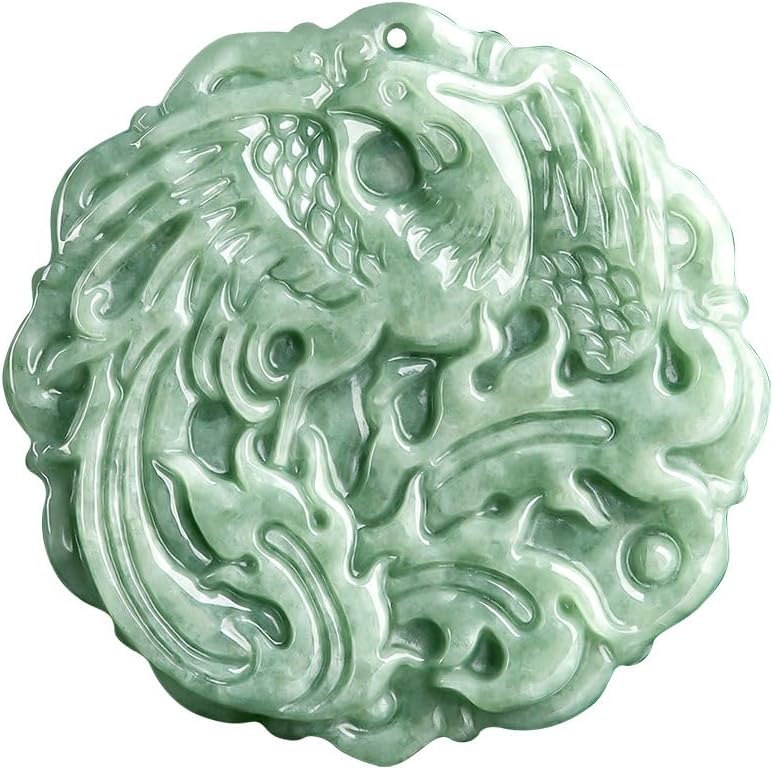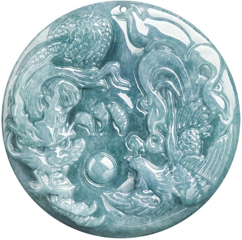 Gold over Auspicious Dragon Phoenix Necklace – Natural Jadeite Pendant Necklace – Ideal for Couples – Beautiful Jewelry Gift