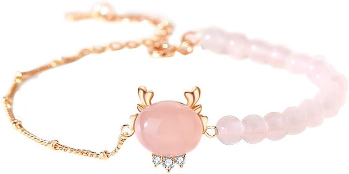 In 14K Gold, a Lucky Dragon Bracelet featuring Pink Crystal/Red Agate and Hetian Jade Charms, making it a Chinese New Year Gift for Her.