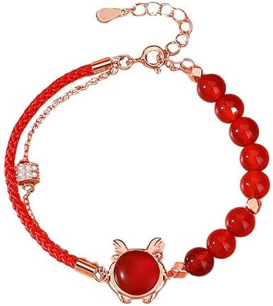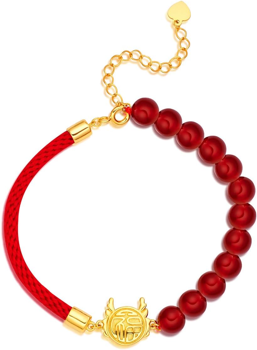 In 14K Gold, a Lucky Dragon Red String Bracelet adorned with Red Agate/Hetian Jade Zodiac Dragon Charms, representing a Chinese-style National Trend Hetian Jade Gift for Her.