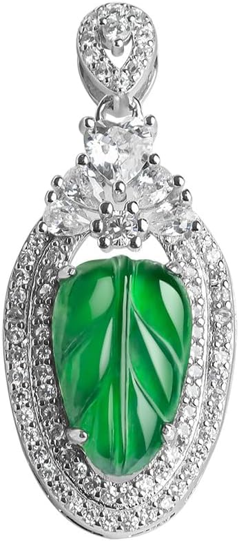 Green Leaf Pendant Necklace, S925 Silver Inlaid Jade Pendant Necklace, Excellent Choice for Birthday or Holiday Gifts