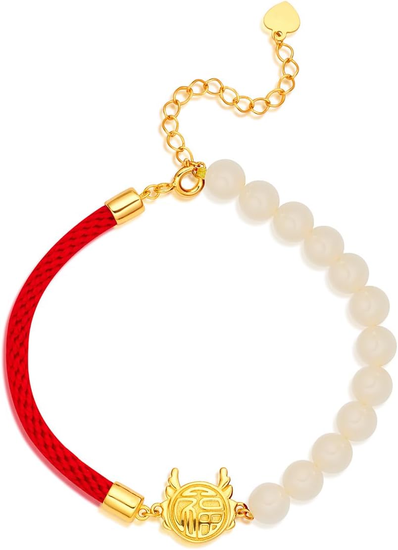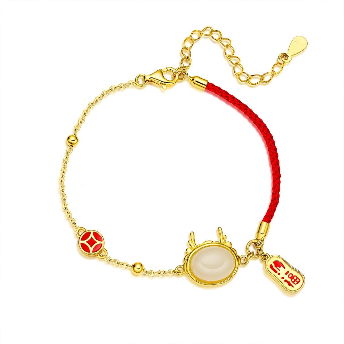 In 14K Gold, a Dragon Year Zodiac Hetian Jade Bracelet, a Lunar New Year Blessing Waist Charm Moissanite Bracelet, representing a Women’s New Chinese-style National Tide Gift.
