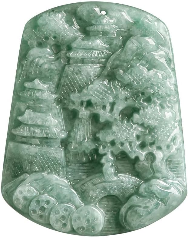 Natural Grade A Jade Necklace, Gold Over Jade Pendant Necklace, Scenery Depicted in Jade, Perfect for Festivals or Birthday Gift
