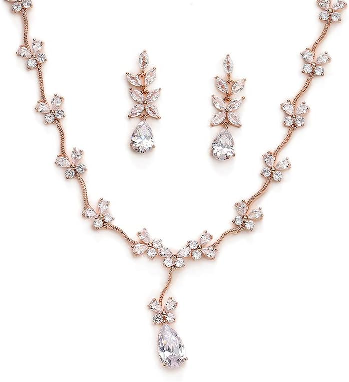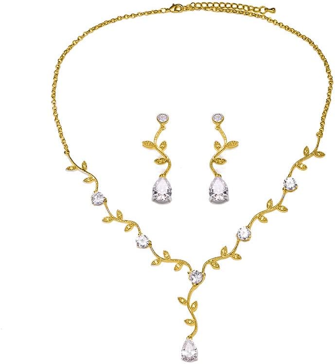 14K Gold Natural Crystal Jewelry Set for Women, Sparkling Wings Shape Crystal Pendant Necklace and Drop Earrings Set, Fashion Wedding Bridal Jewelry Set