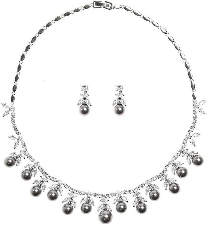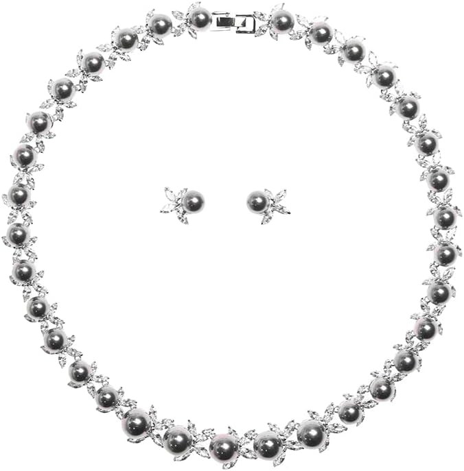 Women’s 14K Gold, Pearl & Crystal Jewelry Set, Freshwater Pearl & Natural Crystal Choker Necklace & Earrings, Chic Wedding Fashion Ensemble