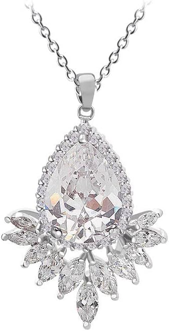 14K Gold & Natural Crystal Tear Drop Pendant Necklace, Stylish Jewelry Gift for Her