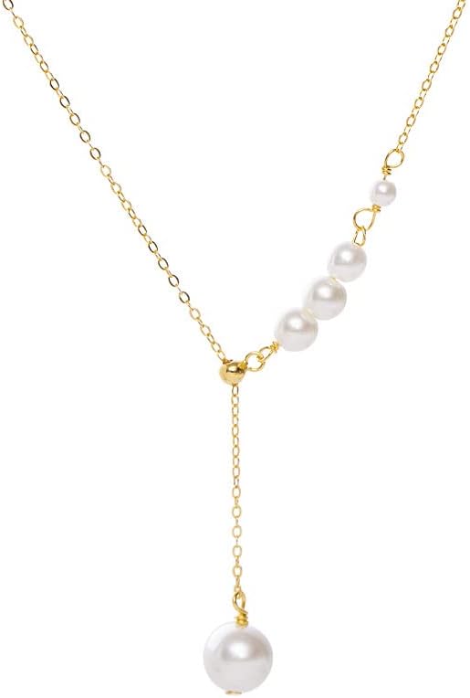 【Design】The classic beauty of high-quality white freshwater cultured pearls floats on a solid gold necklace chain, elegant and sophisticated. It flashes freely with the movement of the wearer, looking glamorous and unique, adding more elegance to your look, suitable for formal events or everyday casual.