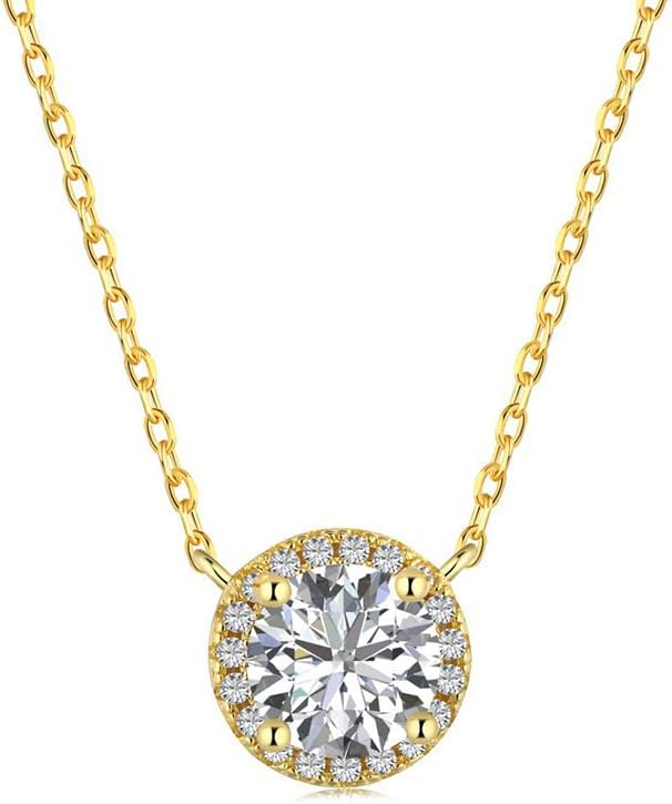【Genuine Material】Solid 14k yellow gold over 925 silver, high hardness VVS1 D color Moissanite Diamond, High Refraction, Chain Length 18"(45cm), Round Diameter 7.5mm, Weight About 2.53g, Easy to Wear, Has Adjustable Tail Chain, Suitable for all women.