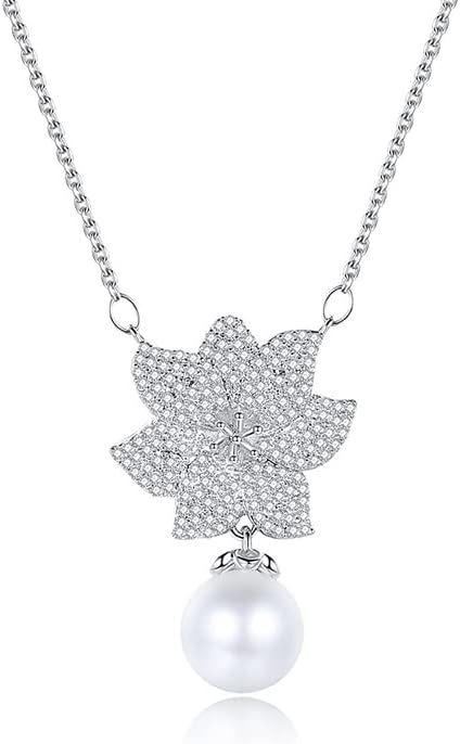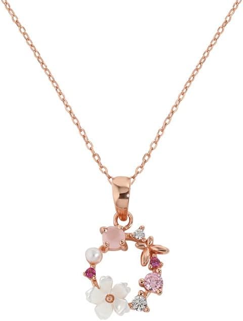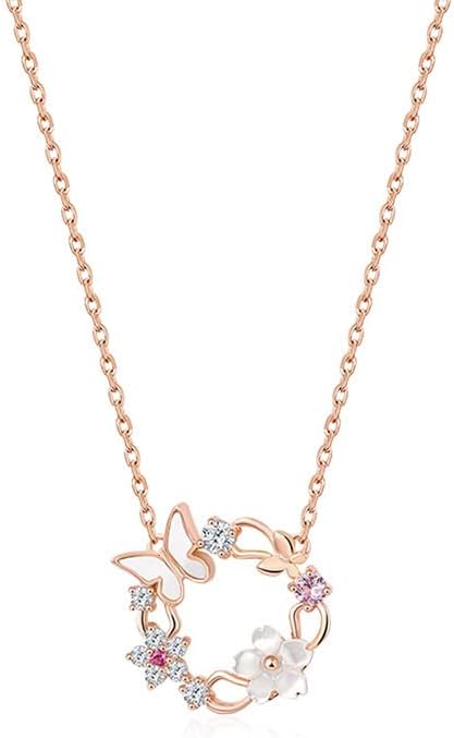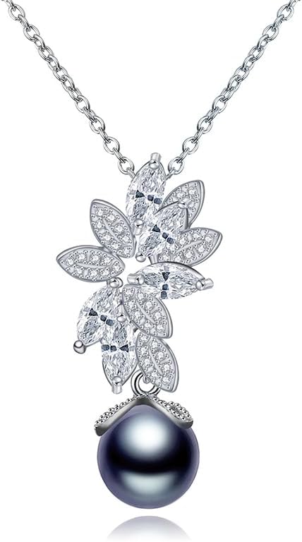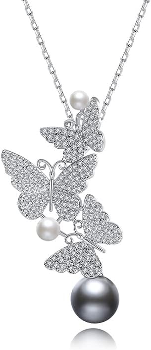 Women’s 14K Gold, Crystal & Freshwater Pearl Pendant Necklace, Dainty Flower & Butterfly Shape, Tahitian Pearl Choker, Stylish Jewelry Gift for Her
