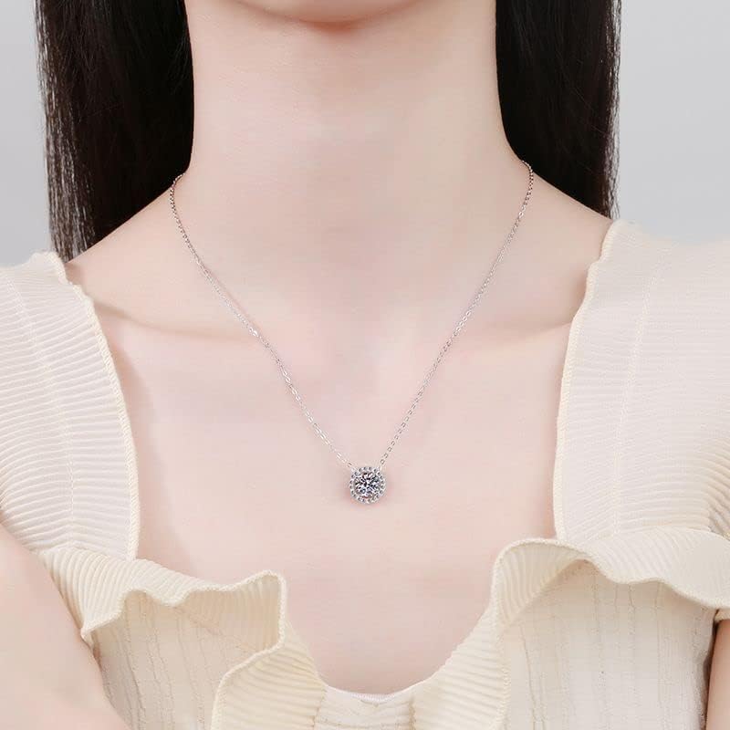 【Necklace Size】The diameter of the 0.3 carat bezel moissanite pendant is about 5mm, the chain length is about 18 inches (45cm), and the weight is about 2.5g, suitable for all women.