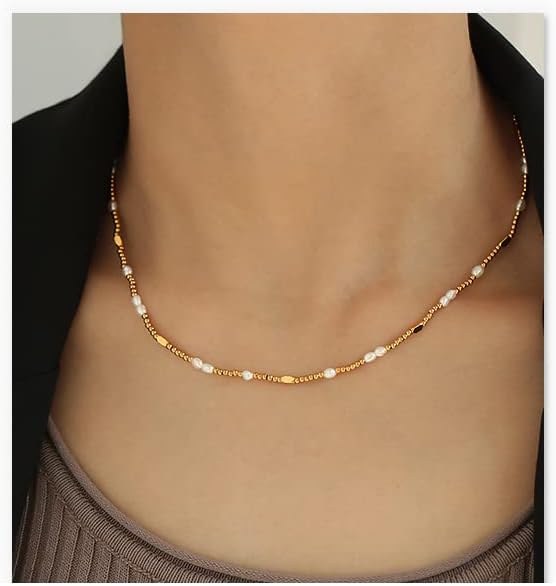 14K Gold Chain Pearl Necklace for Women, Dainty Freshwater Cultured Pearl Choker Necklace, Jewelry Gifts for Her, Wife, Mom, Girlfriend