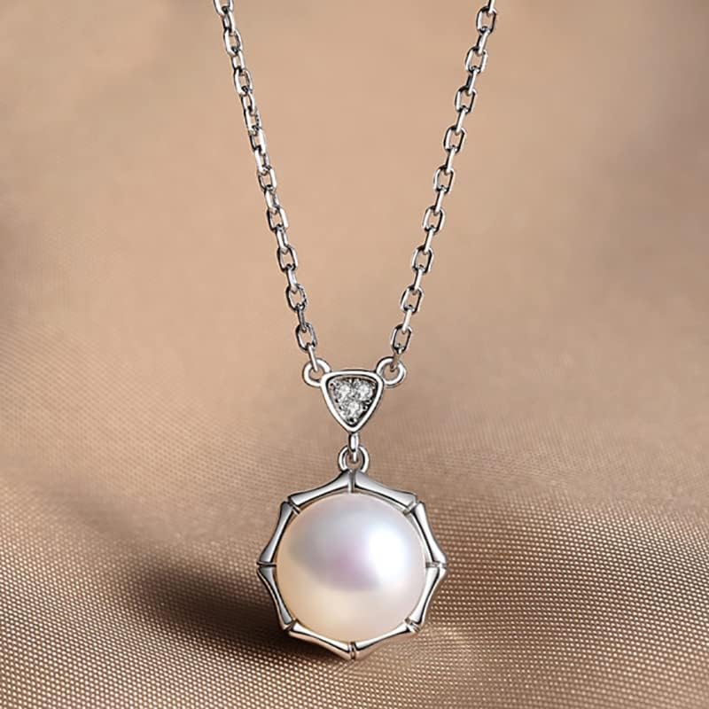【Minimalist Elegance】Showcasing a lustrous freshwater white pearl, this pendant radiates sophistication with its sun-inspired gold frame and a dazzling moissanite accent, a testament to refined simplicity.