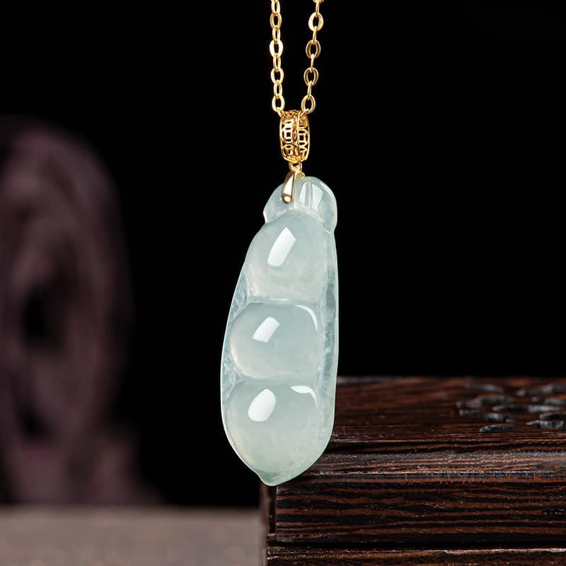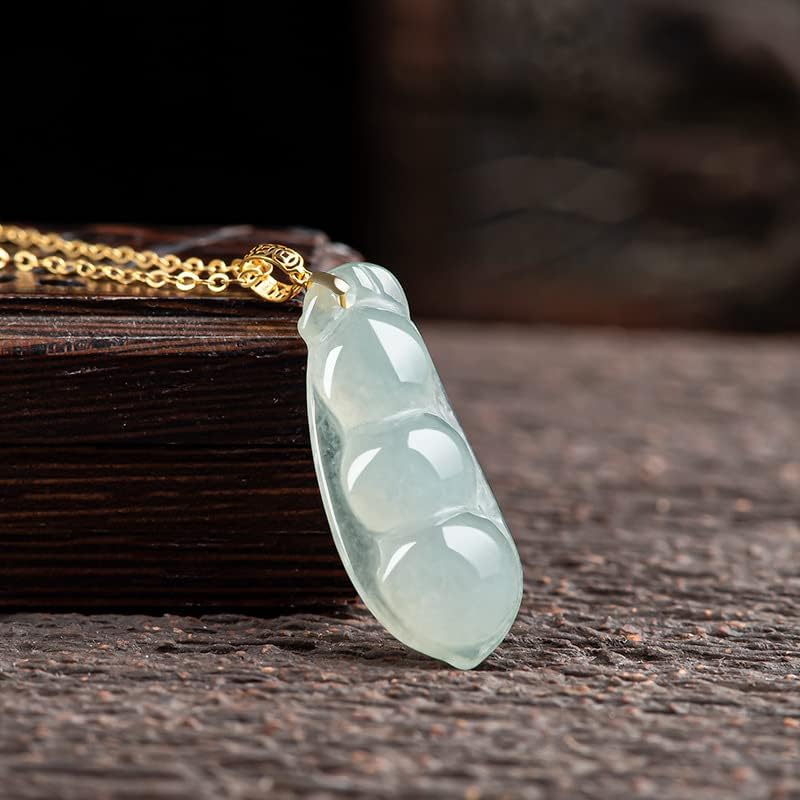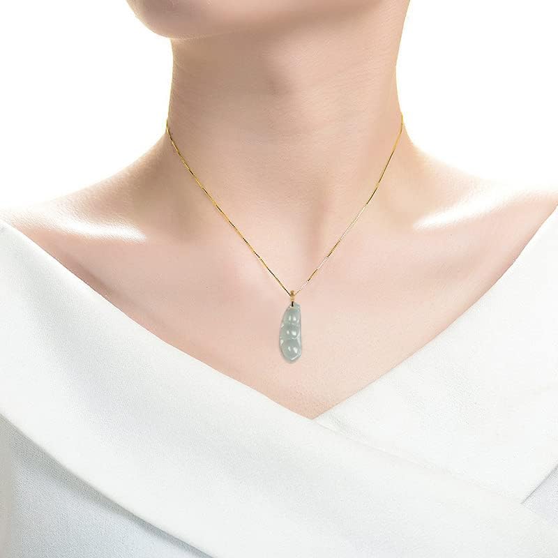 【Necklace Size】The length of the necklace chain is 17.7 inches (40+5cm), the size of the jade pendant is 31*9mm, the thickness of the green bean pendant is 5mm, and the weight of the necklace is about 2.6 grams, which is suitable for everyone to wear.