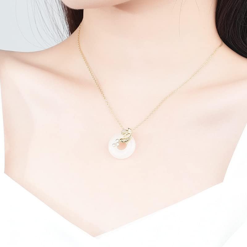 【Necklace Size】The length of the necklace chain is 17.7 inches (45cm), and the diameter of the jade stone is about 20mm. It is suitable for all women to wear.