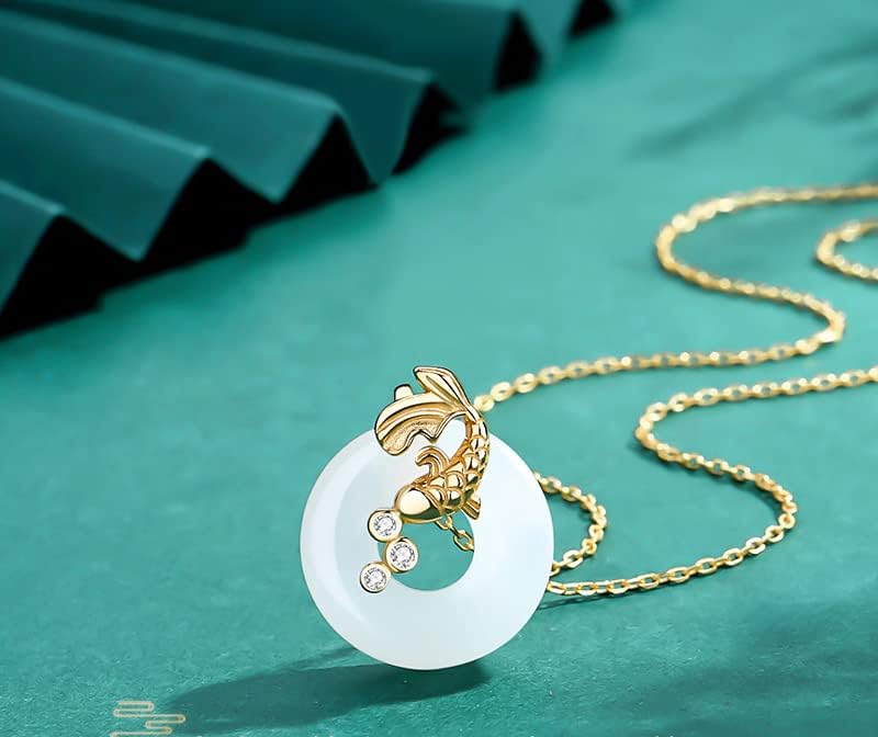 【Unique Design】The jade in the shape of a safety button is paired with a lifelike koi carp. In Chinese culture, they represent a beautiful meaning and can bring good luck, smooth sailing in career and life.