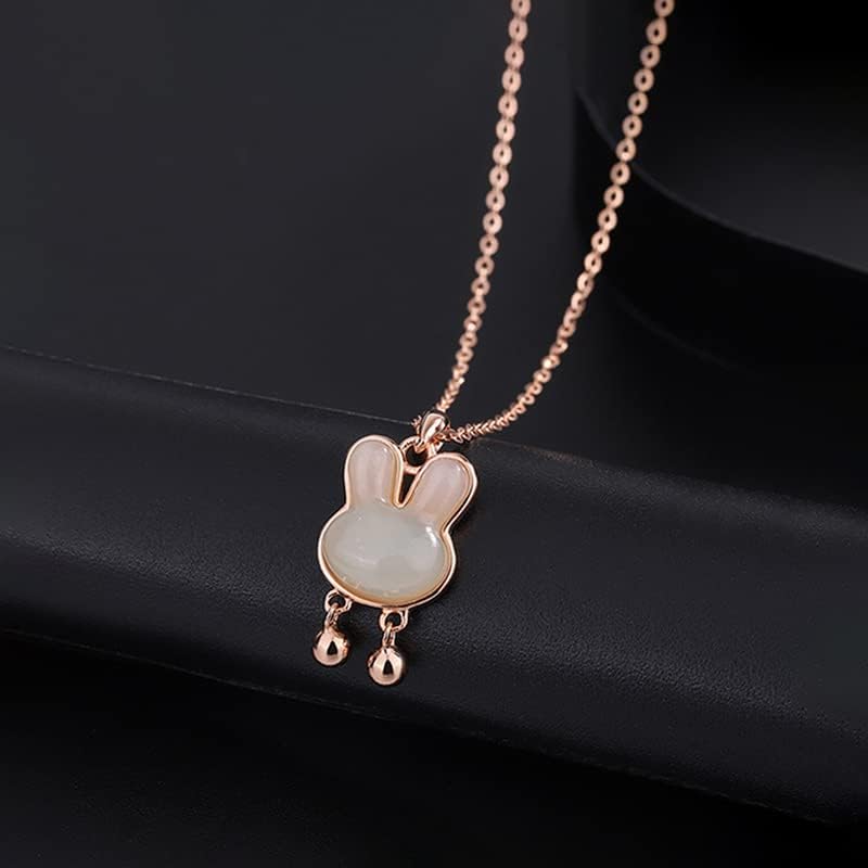 【Unique Design】The crystal clear jade is perfectly combined with the necklace. The exquisitely carved jade rabbit pendant is cute and charming. The two small round beads hanging from it enhance the overall design sense and add a touch of sophistication to the necklace. Easily paired with casual and formal attire, it becomes a timeless accessory for any occasion.