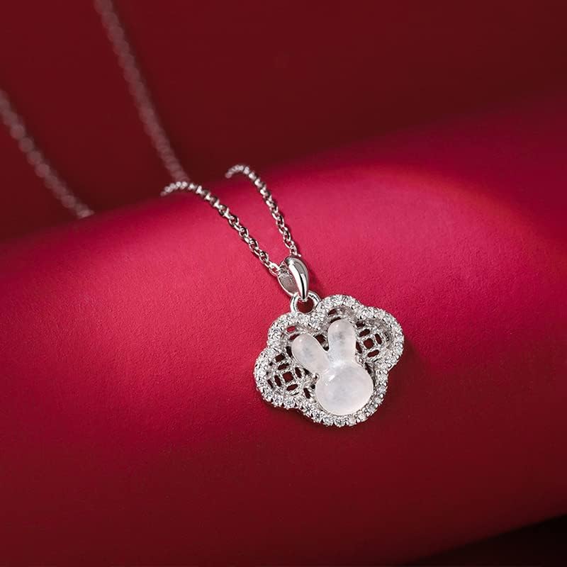 【Designer Words】Unleash your inner fashionista with our unique necklace featuring a jade rabbit pendant in the shape of a peace lock. At the center of the pendant is a beautifully carved jade rabbit surrounded by a row of shimmering Moissanite stones. The complex hollow pattern design in the center adds elegance. This necklace is a must-have for anyone who loves unique and stunning jewelry