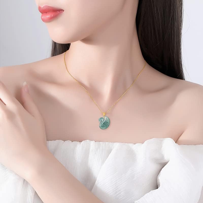 【Necklace Size】Necklace chain length: 17.7 inches (40+5cm), swan pendant size: 21*14.5mm, jade pendant thickness: 3.4mm, necklace weight: about 1.8 grams, suitable for everyone.