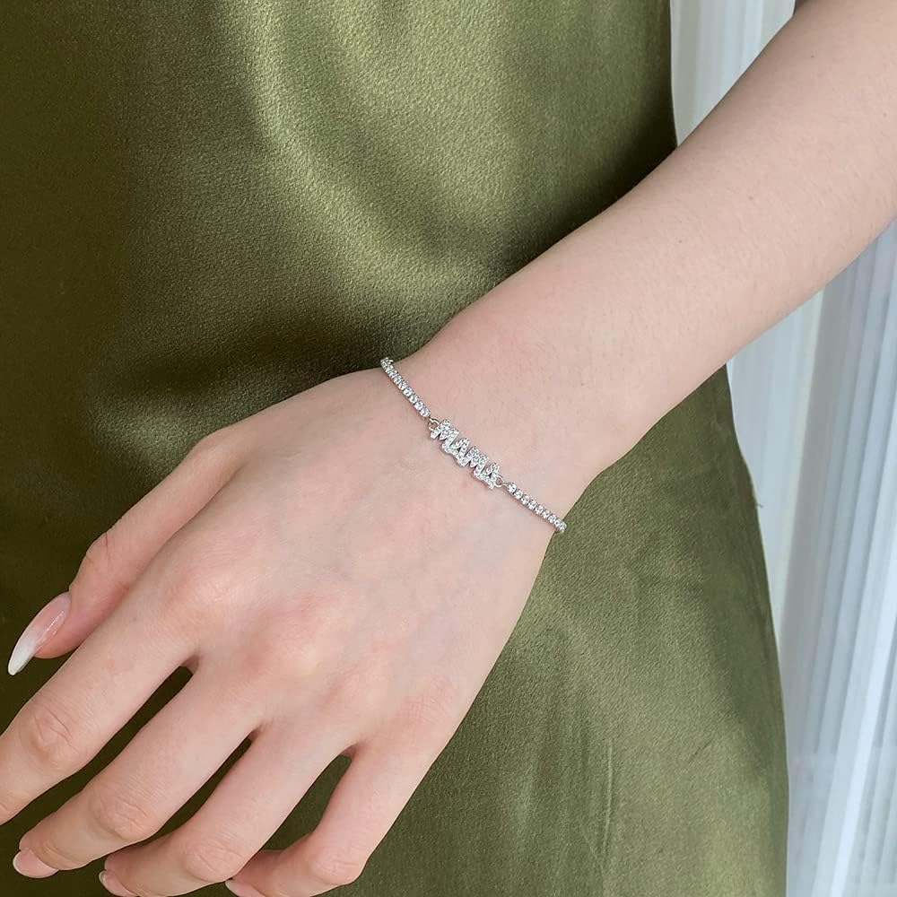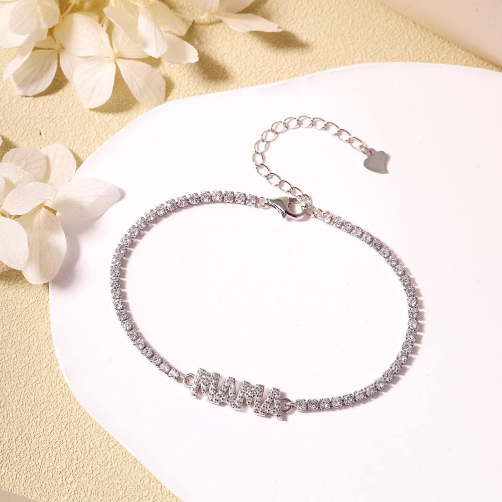【Letter Design】The MAMA bracelet is an exquisite piece of jewelry that combines beautiful design with luxurious simplicity. The entire bracelet is expertly inlaid with sparkling moissanite stones, which add a touch of glamour and elegance to any outfit. The high-quality stones are carefully selected for their exceptional brilliance and shine, ensuring that the bracelet will catch the eye and make a statement.