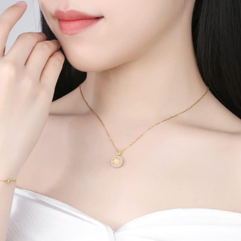 【Unique Design】The crystal clear natural jade is perfectly combined with the necklace, and the round pendant that can rotate 360 degrees means luck comes and happiness every day. Wear it for any occasion.