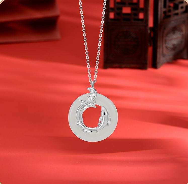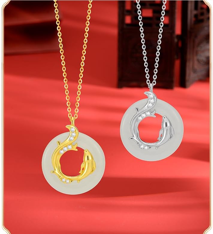 【Koi Fish and Safety Buckle Symbolism】Embrace the Lunar New Year with our exquisite necklace, featuring a unique safety buckle design and a koi fish motif. Crafted with Hetian jade, known for its purity and cultural significance, this pendant symbolizes good fortune, prosperity, and protection.