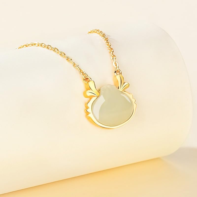 Gold Lunar New Year Zodiac Dragon Necklace, Natural Hetian Jade Pendant, Chinese Style Jewelry Gift for Women